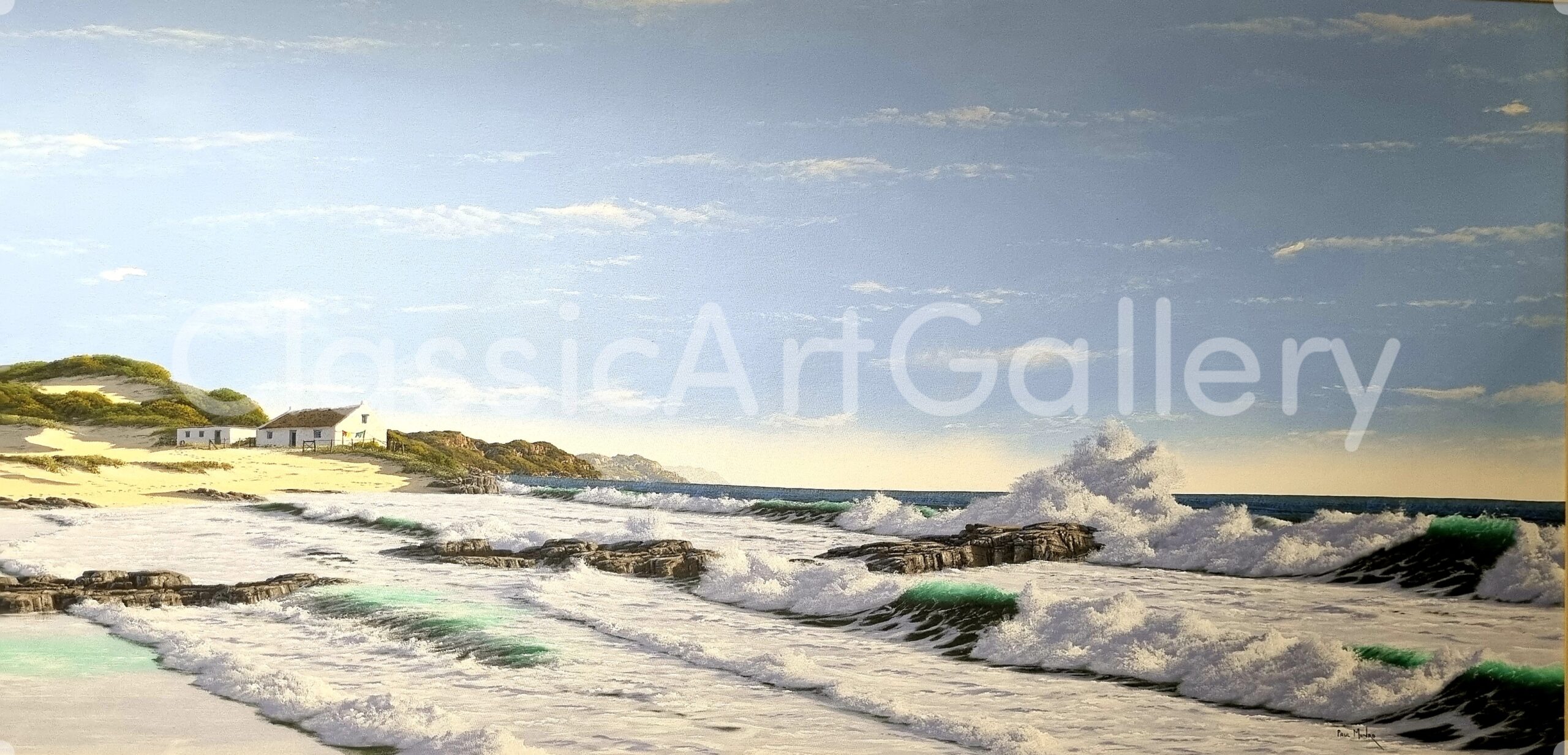 Be the first to review “150. Beach scene, 223x123cm, brown frame”