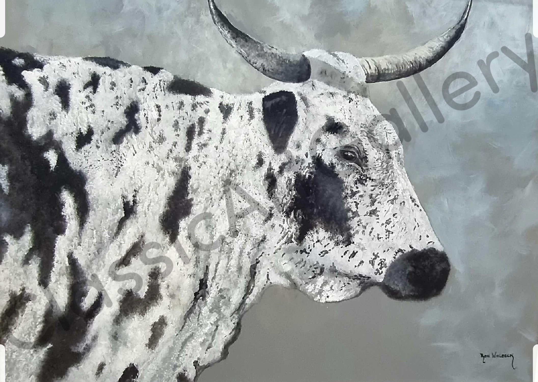 Be the first to review “162. Black and white bull, 97x80cm, brown frame.”